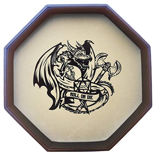 Fantasydice - ROLL OR DIE- Dice Tray - 11.5" Octagon - for Dice, Board Games, Tabletop RPGs Like D&D (DND) 3.5 and 5e, Call of Cthulhu, Pathfinder,Shadowrun and Other Roleplaying Games