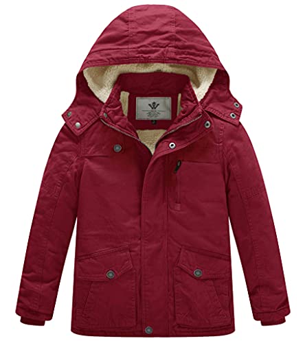 WenVen Boy's & Girl's Winter Overcoat Kids Long Military Jacket (Claret, 10-12)