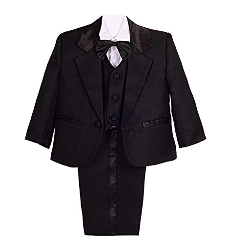 Lito Angels Baby Boys' Formal Suits Wedding Tuxedo Outfits No Tail 5 Piece Set Infant Size 12 Months Black