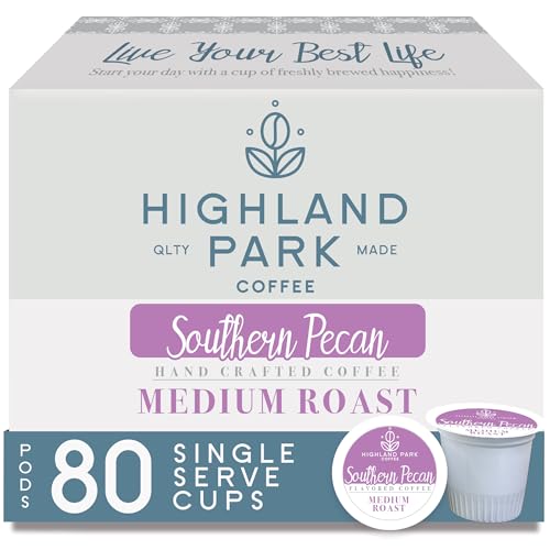 Highland Park Coffee Single Serve Pods Compatible with Keurig K Cup Brewers, Southern Pecan, 80 Count