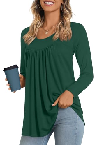 Features: Stretch, Casual style top, Pleated front blouse, Round neck tunic, Long sleeve tshirts, Hem flare tee, Solid color and print, Above the butt length, The materials are soft and elastic, Not lined, It is suitable for spring, fall and winter