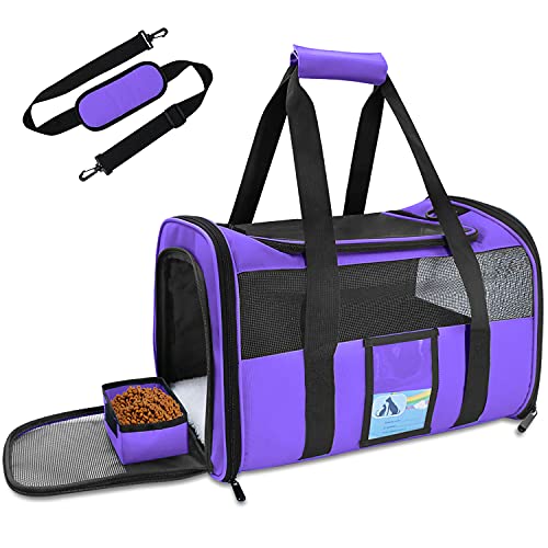 Refrze Pet Carrier Airline Approved, Cat Carriers for Medium Small Cats, Soft Dog Carriers for Small Medium Dogs,TSA Approved Pet Carrier for Cats Dogs of 15 Lbs, Puppy Carrier,Purple