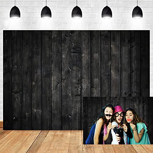 OERJU 7x5ft Old Dark Wood Texture Wall Photography Backdrop Vintage Retro Black Wooden Board Floor Scary Theme Party Background Kids Adult Artistic Portrait Photo Shooting Vinyl Studio Props