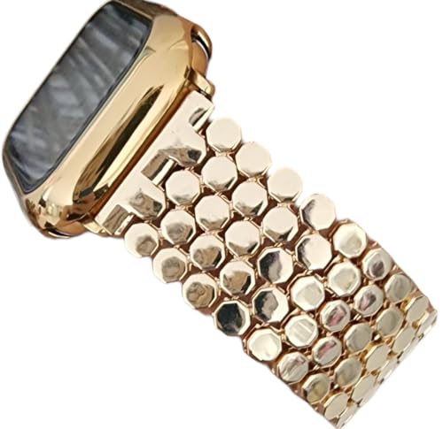 DSAAplus Gold Metal Honeycomb Band For All Apple Watch Stylish Chain Bracelet for iWatch Series 11 10 9 8 7 6 5 4 SE/Ultra 3 2 1 (B yellow gold, 42/44/45/49mm)