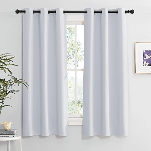 RYB HOME Room Darkening Curtains for Living Room, Energy Smart Privcay Window Curtains Drapes Durable Rustproof Grommet Panels for Bedroom, W42 x L63 inch, Greyish White, Set of 2