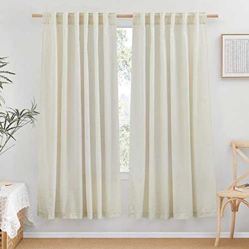 NICETOWN Linen Curtains for Bedroom Off White, Retro Rod Pocket & Back Tab Thick Flax Semi Sheer Privacy Added Boho Window Treatment Light Filtering for Flat/Apartment, 55" W x 72" L, 2 Panels