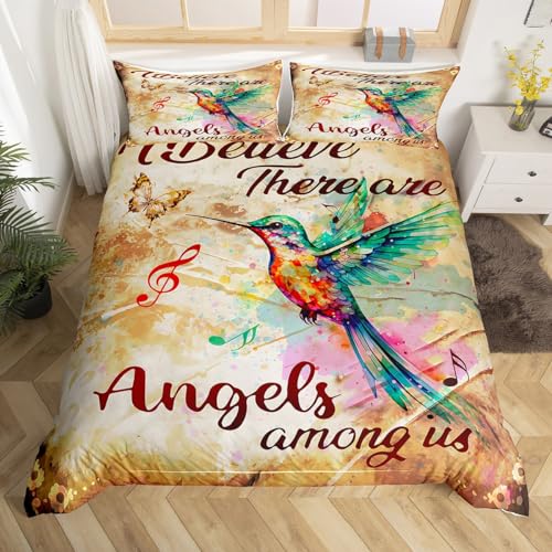 Hummingbird Bedding Set King Size Kids Tropical Birds Butterfly Comforter Cover Set for Women Men Adults Vintage Style Musical Note Duvet Cover Farmhouse Garden Bedspread Cover Room Decor Quilt Cover