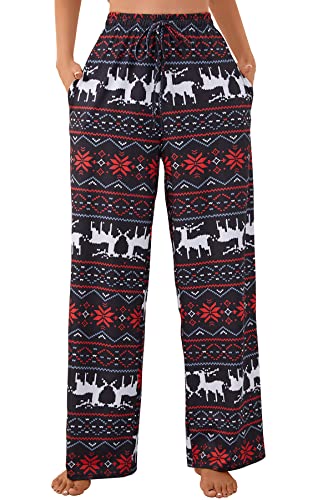 X-Image Womens Christmas Printed with Pockets Pajama Pants Comfy Stretch Casual Drawstring Palazzo Lounge Pant XMAS Reindeer, Medium