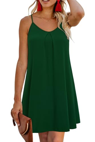 ULTRANICE Women's 2026 Spring Summer Casual Vacation Hawaiian Beach Dresses Cover Up V Neck Dark Green Backless Mini Sun Dress(Dark Green,M)