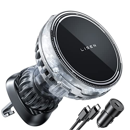 LISEN for 15w Fan MagSafe Car Mount Charger - [Fastest Cooling Charger] Magnetic Phone Wireless Charging Mount for iPhone 16/15/14/13/12 Pro Max/Plus/Mini - Ice Cooler Magnetic Phone Holder, Silver