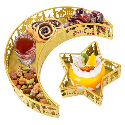 - 【Perfect Ramadan Decoration】You will receive a set of golden metal trays in the shape of moon and star. The beautiful moon and star shapes specially designed for Eid al-Fitr fit perfectly with the festive atmosphere of Ramadan. Place this set of trays on the dining table to make your home more beautiful and add glamour to your Ramadan dinner.