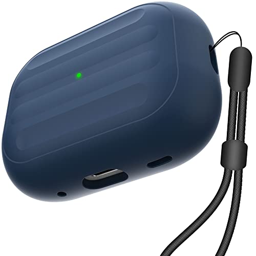Anti-Lost Case for AirPods Pro (2nd Generation),one-Piece Design case,Wireless Charging, LED Visible,Lanyard Included.(Blue)