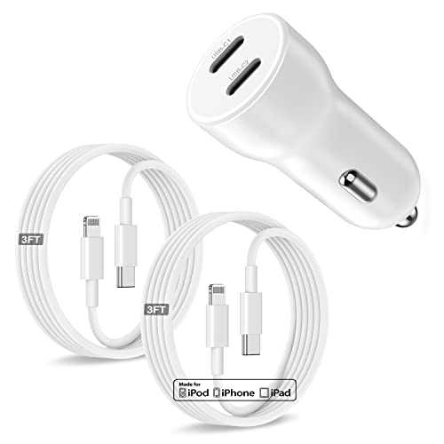 for iPhone 14 13 Car Charger,[MFi Certified]45W Dual Port USB C Rapid for Apple Car Adapter with 3ft Type C to Lightning Cable Fast Charging for iPhone 14 Pro/14 Pro Max/14 Plus/13/12/11/XS/XR/SE,iPad