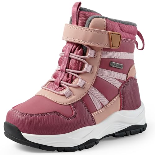 Harvest Land Kids Winter Boots Waterproof Girls Boys Snow Hiking Outdoor Boots Anti Collision Anti-Skid Mid Ankle Adventure Trekking Shoes Rose 2.5 Little Kid