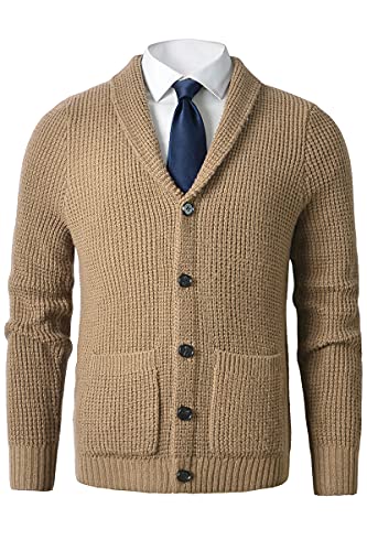 Men's Shawl Collar Cardigan Sweater - Cable Knit, Button-Up, Merino Wool - A Modern Classic That Never Goes Out of Style_Apricot_Small