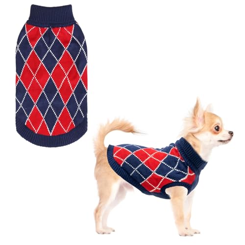 KOOLTAIL Small Dog Sweater - Knit Turtleneck Cold Weather Pullover for Medium Large Dogs, Soft Diamond Plaid Knitwear Winter Warm Clothes, Pet Coat for Puppy Cat Girls Boys XS