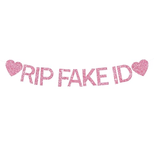 BEISHIDA 21st Birthday Decorations for Her Happy 21st Birthday Banner -NO DIY, Pink Glitter RIP FAKE ID Banner Sign for Backdrop Funny Party Supplies for Him Her Girl