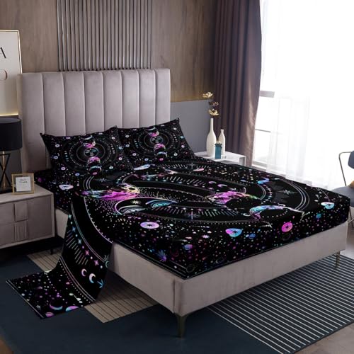 Manfei Sun and Moon Sheet Set King Size, Stars Space Psychedelic Bed Sheet Set 4pcs with Deep Pocket Fitted Sheet + Flat Sheet + 2 Pillowcases, Boho Sun Moon Colorful Bedding Set for Kids Girls Adult