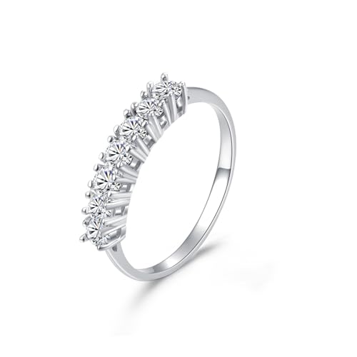 E Silver Rings for Women, Whit gold Eternity Women Rings Band Plated Diamond Round Cubic Zirconia CZ Wedding Rings Thumb Rings (White Gold, 10)