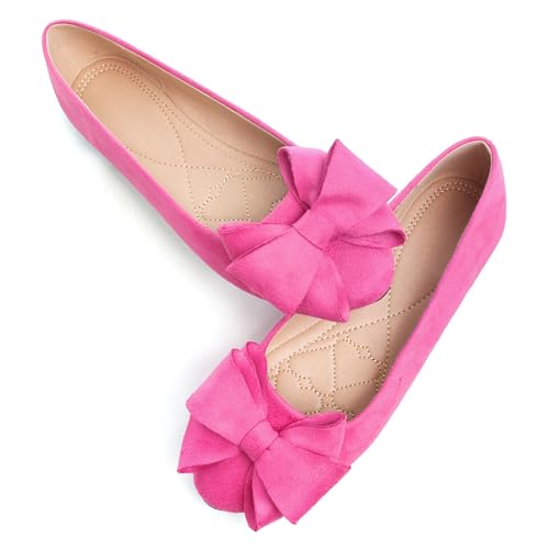 [SUITABLE FOR ANY SCENES]: - Womens shoes flats with cute bows, offer a minimalist, sophisticated solution for easy fashion. Whether resting at home, walking outside, shopping in the supermarket or going out for an outing. The classy womens flats are an ideal choice as your casual and dressy footwear.