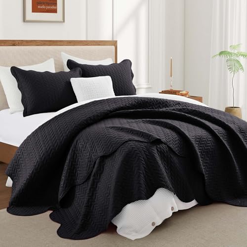 IR Imperial Rooms King Quilt Bedding Set Size (106" x 96") + 2 Pillow Shams (20" x 36"+ 2") - 3 Pcs All Season Lightweight Reversible Microfiber Coverlet Embossed Quilt Bedspread (Black)
