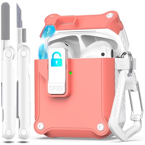 【Upgraded Lock and Auto-Pop-up Lid Protection】: R-fun case has upgraded locking and auto-pop-up cover functions to provide full protection compatible with your Airpods 2nd Gen/1st Gen. This case features an all-around shock-absorbing design to prevent accidental drops and collisions. The auto-closing feature prevents the case from opening when dropped from a height, effectively protecting your valuable headphones from any damage.