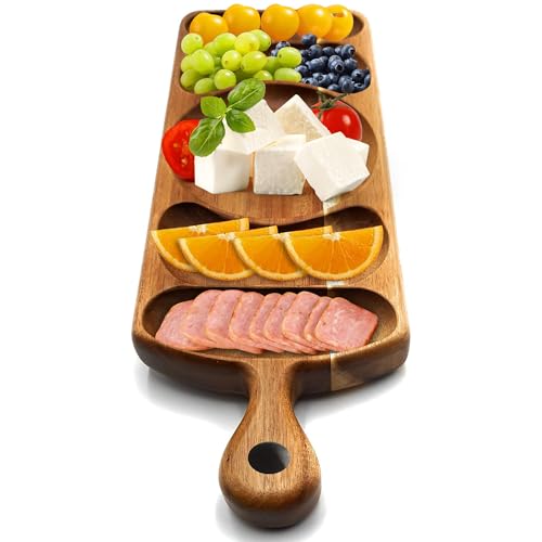 - [Divided Serving Platter] The divided sections keep foods organized and looking fresh. Use it as a serving board or wooden boards for serving food like snack platters, appetizer trays, cracker trays for serving, and veggie platters.