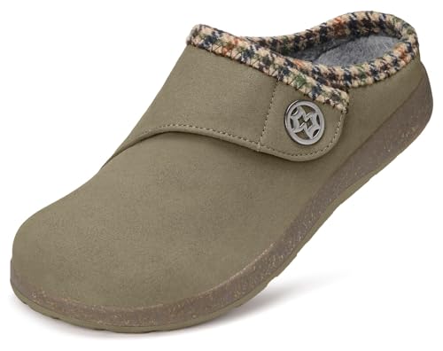 Eagsouni Women's Men's Slip On Slippers Orthopedic Suede Fuzzy Cozy House Shoes with Arch Support Winter Warm for Plantar Fasciitis Outdoor Indoor,Green,44 EU