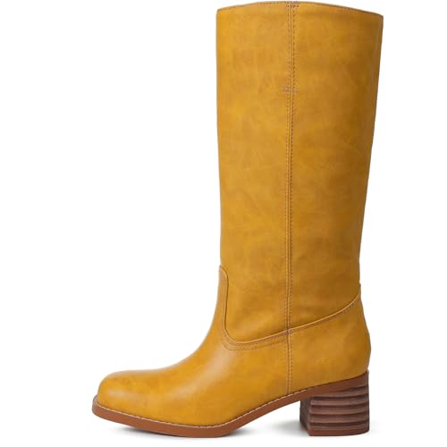 Tarkwa Banana Women's Knee High Boots Wide Calf Chunky Block Heel Long Boot for Women Casual Square Toe Boots Comfortable Low Heel Womens Boot Dressy Trendy Size 7