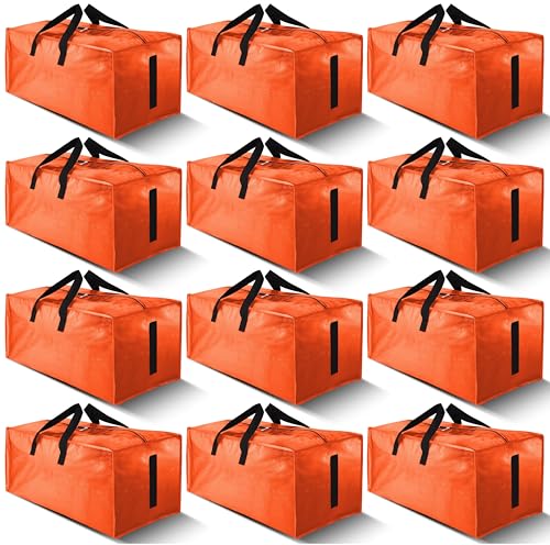 HOMESURE 12 Pack Large Strong Moving Bags with Zippers & Carrying Handles - Water-Resistant - Heavy Duty Storage Tote for Space Saving, Fold Flat, Alternative to Moving Box (Orange)