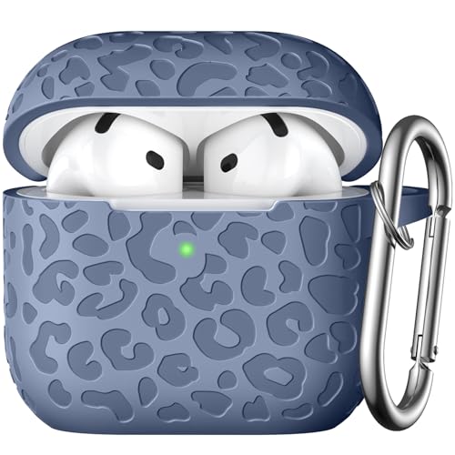 Leopard Engraved for AirPods 4 Case Cover 2024,Soft Silicone Protective Case Compatible with Apple AirPods 4th Generation for Women,Cute for AirPod 4 Accessories with Keychain (Blue Gray)