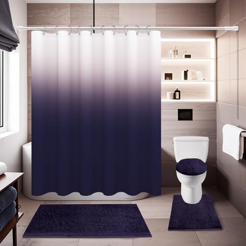 BAAHRNOM 4 Pcs Gark Purple Shower Curtain Sets with Rugs Solid Bathroom Sets with Shower Curtain and Rugs Shower Curtains for Bathroom Toilet Lid Cover Modern Bathroom Decor