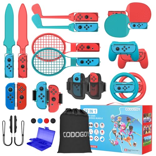 Switch Sports Accessories, CODOGOY 22 in 1 Switch Sports Accessories Bundle with Carry Bag for Switch Sports Games, Family Accessories Kit Sports Party Pack Compatible with Nintendo Switch/Switch OLED
