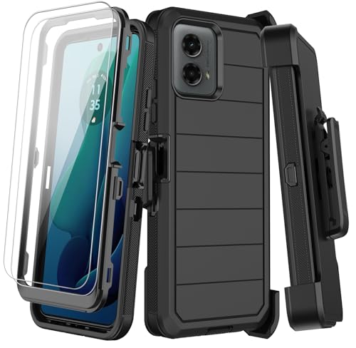 KECAI for Motorola Moto G 5G 2024 Case with Belt Clip Holster, 2X Screen Protector, Heavy Duty Shockproof Drop Protection Military Grade Rugged Full Body Phone Cover with Kickstand