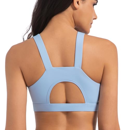 Sports Bras for Women High Impact Racerback Workout Tops Molded Cup Running Bra Sexy Backless Yoga Crop Top,Blue,Small