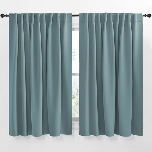 READY-MADE: Set includes 2 blackout curtain panels, each panel measuring 70" wide x 63" length. Quality fabric without liner feels soft and heavy. Thread trimmed and wrinkle-free, both sides are the same color.