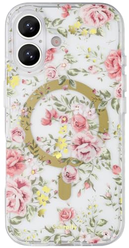 SCORPIFY for iPhone 17 Case [Compatible with MagSafe] with Country Rose Floral Design, Cute Clear Flower Magnetic Phone Cover for Women Girls, [Non Yellowing] Slim Bumper with Gold Accents