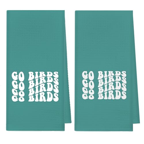 kunlisa Trendy Groovy Go Birds Football Kitchen Towels Set of 2,Gifts for Football Lovers Fans Players Hand Towels for Bathroom,Trendy Light Green Go Birds Dish Tea Towel for Kitchen Decor,16x24 Inch