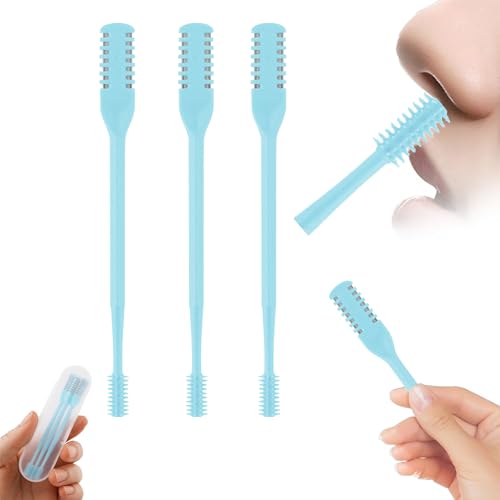 AHHALFFY 3 Pcs 2-in-1 Nasal Hair Trimmer Set, 360° Rotating Double-Sided Nose & Ear Hair Cutter for Men & Women, Portable Nostril Grooming Tool with Soft Cleaning Brush(Blue)