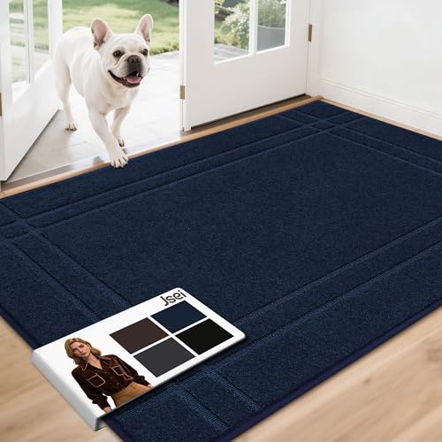 JSEI Entryway Rugs Doormat 36"x60", Non-Slip Dirt Trapper Door Mats Indoor, Washable Absorbent and Stain Resist Welcome Floor Mat for Front Door, Dog Door Mat, Muddy Wet Shoes & Paws, Navy Blue