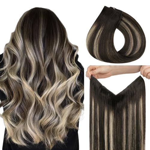 HOTBANANA Wire Hair Extensions, Natural Black to Light Blonde 22 inch 120g, Real Human Straight Fish Line Hair Extensions