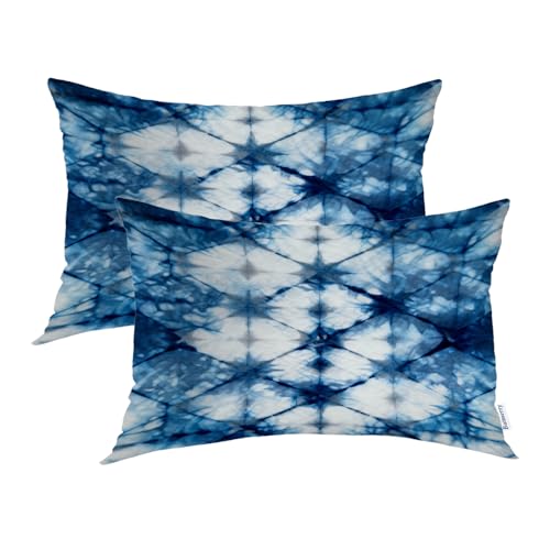 Batmerry Blue Abstract Tie Dye Pillowcases, Deep Blue Art Mesh Decorative Bed Pillowcases Digital Printing Blended Fabric Bedroom Set Hidden Zipper On Short Side 20X26 in
