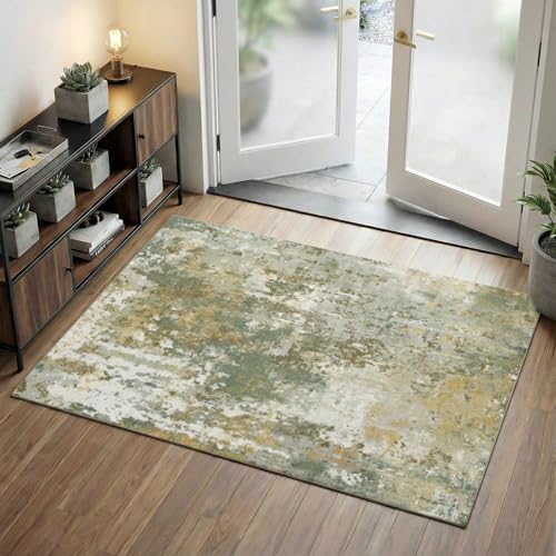 Entryway Rug 3x5 Green Door Mat Indoor Entrance 36x60, Washable Small Throw Rugs for Kitchen Floor, Entry, Front Door, Bedroom Bedside, Non-Slip Low Pile Stain & Fade Resistant, Sage Green