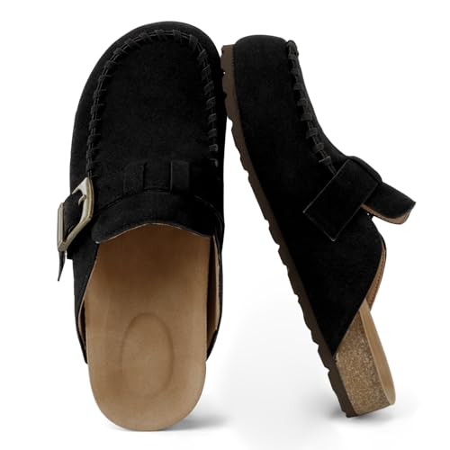 MLTT Black Clogs for Women, Womens Casual Clogs with Moc Toe Design, Adjustable Side Buckle, Soft Memory Foam Footbed and Non-Slip Durable Outsole,Womens Slip On Shoes for Holiday Walking Size 6